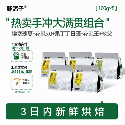 野鸽子埃塞俄比亚瑰夏精品手冲大满贯组合咖啡豆阿拉比卡新鲜烘焙
