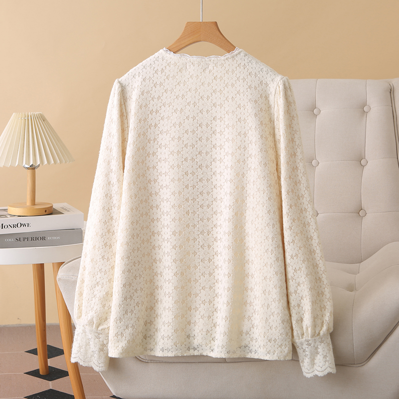 蕾丝衬衫女大码秋冬加绒长袖上衣