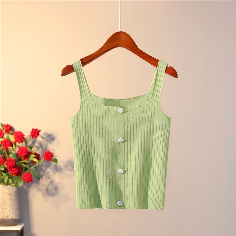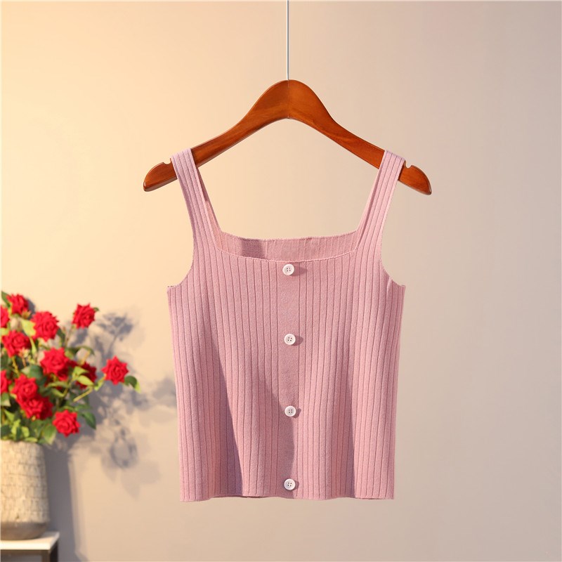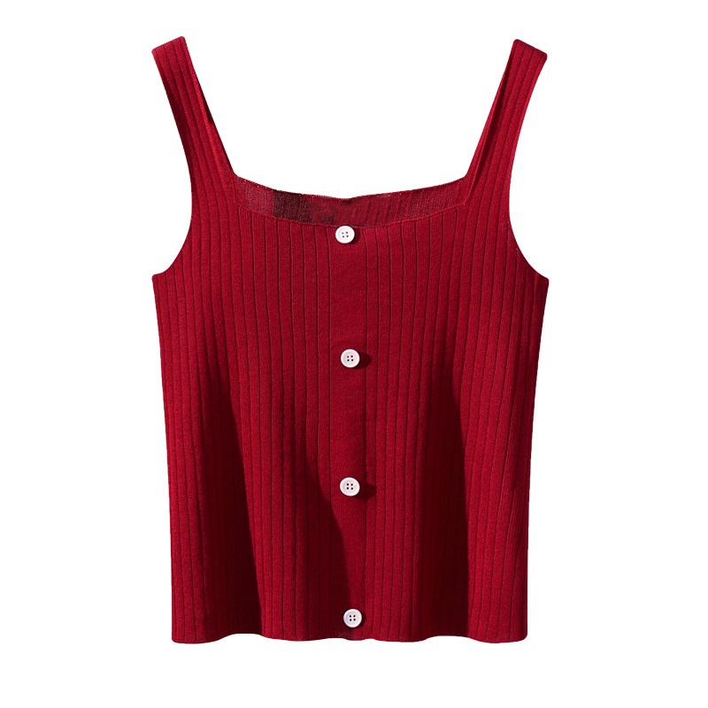 方领吊带背心女夏季修身高腰短款冰丝针织打底衫酒红无袖内搭上衣