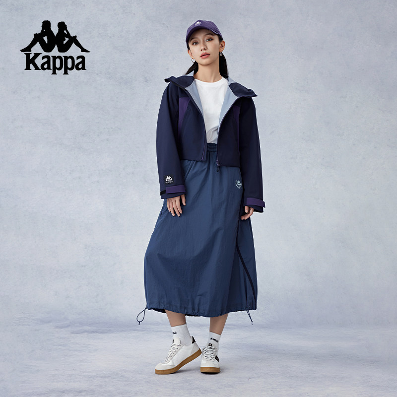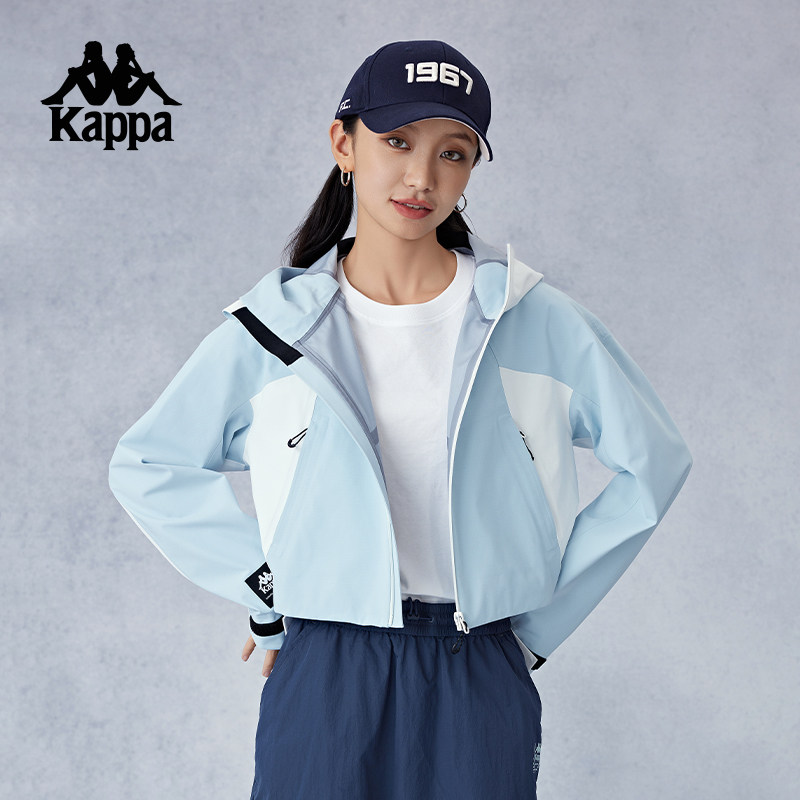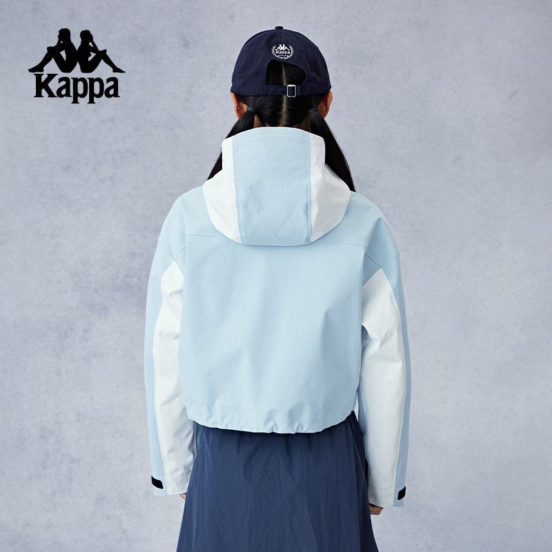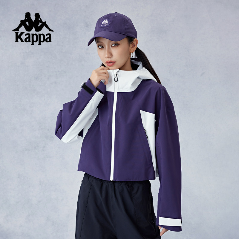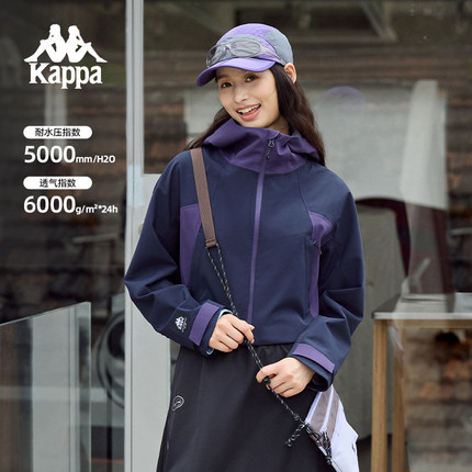 Kappa卡帕背靠背冲锋衣女款2026新款户外防泼水连帽运动上衣外套