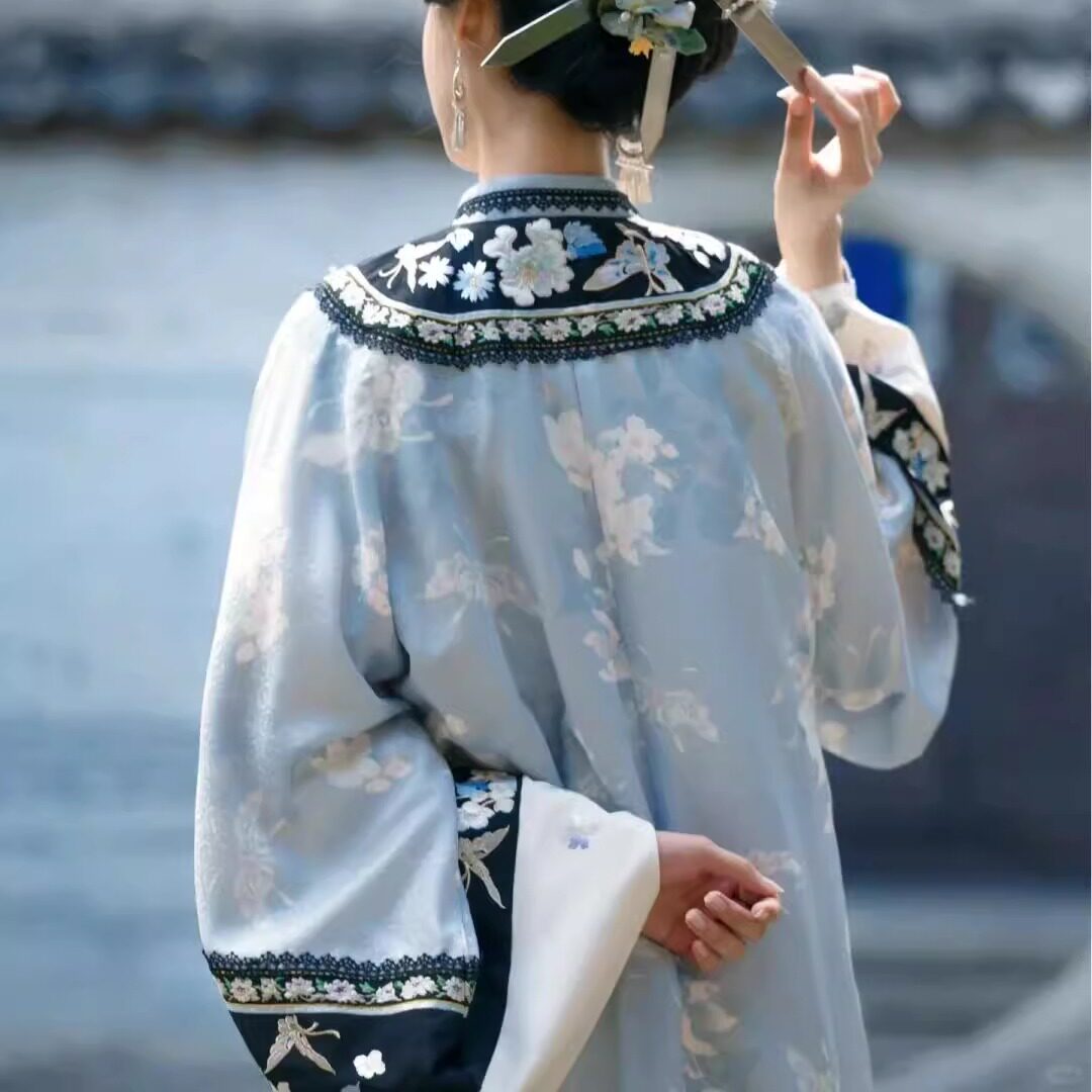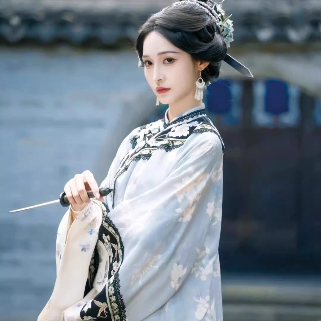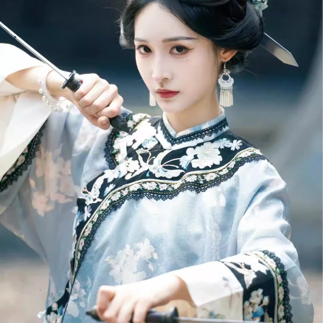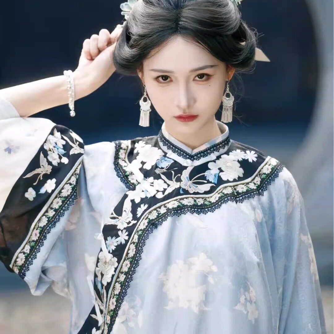 女清汉三把刀印花圆领斜襟格格服晋商少奶奶鳖衣古风徽商少奶奶