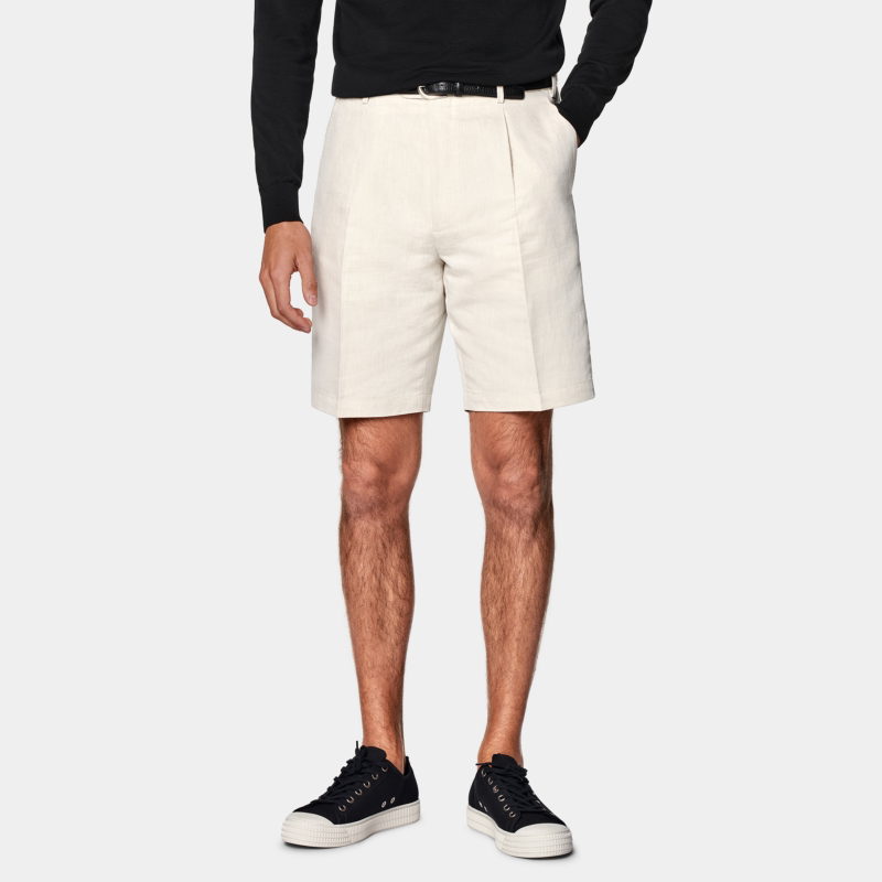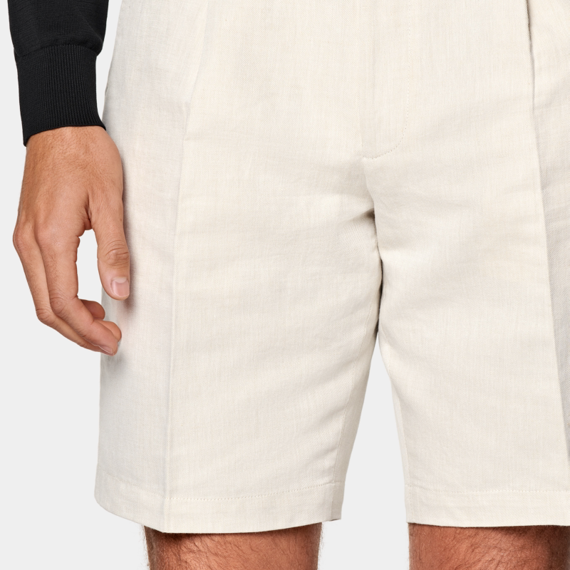 SUITSUPPLY夏季面料砂砾色亚麻混纺直筒男士短裤