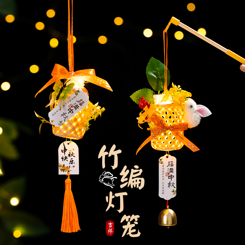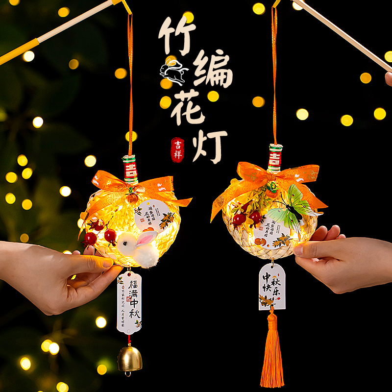中秋古风兔子灯笼儿童手提发光花灯手工diy制作材料玉兔汉服宫灯