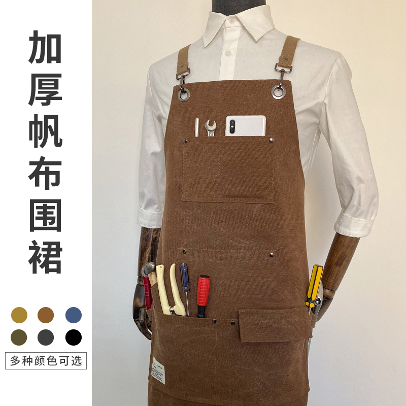 日式定制logo印字无袖罩衣咖啡师围裙奶茶店防水防污背带款工作服