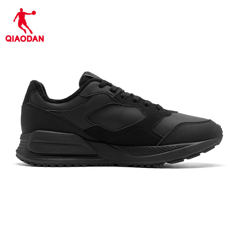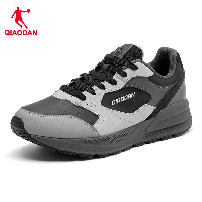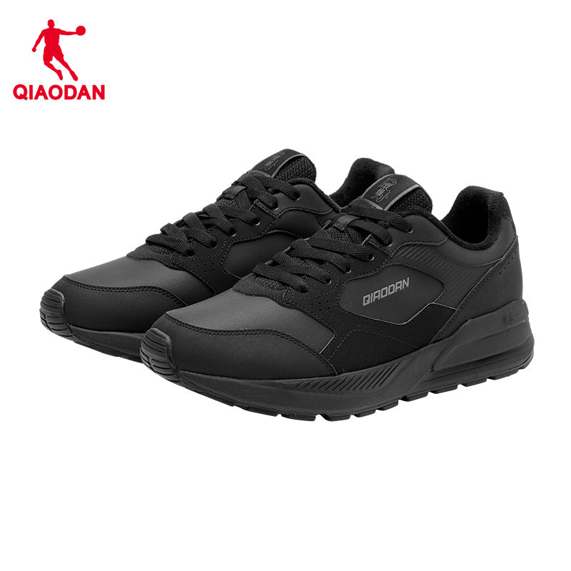 乔丹革面防水加绒保暖休闲鞋男运动鞋2025冬季新款黑色百搭棉鞋男