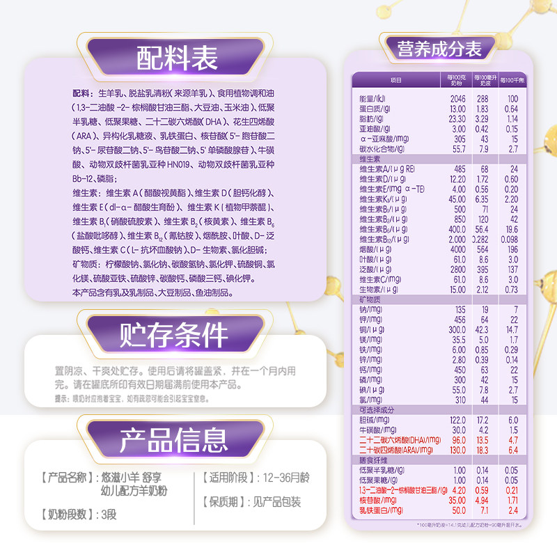 伊利金领冠悠滋小羊舒享3段130g1-3岁婴幼儿羊奶粉