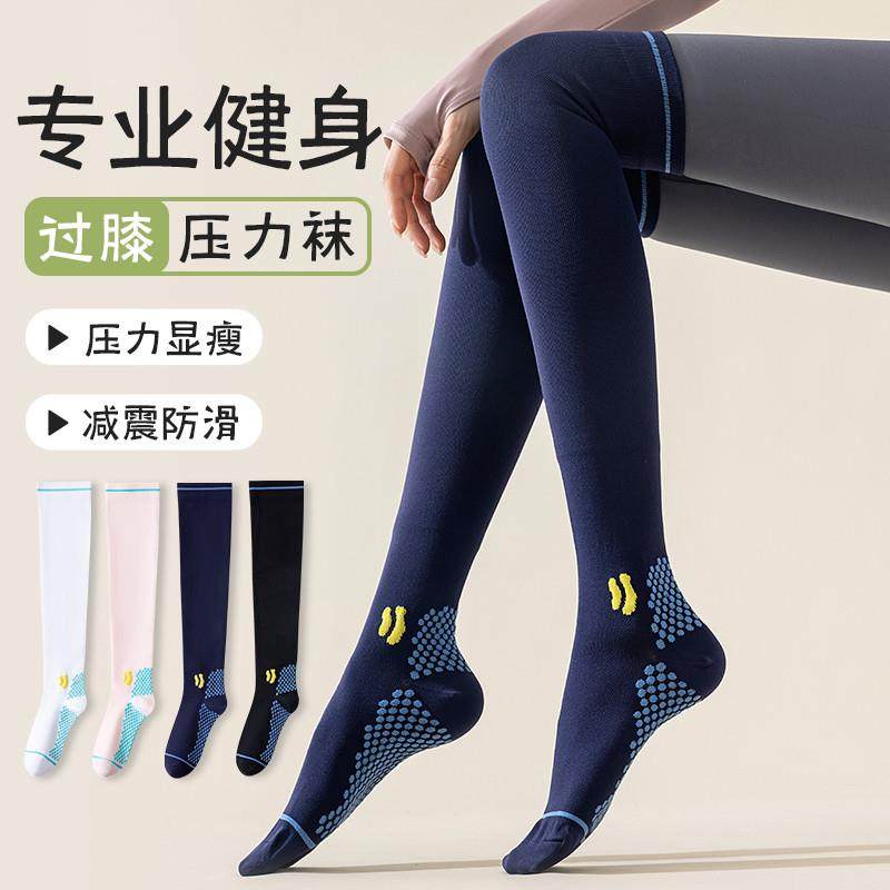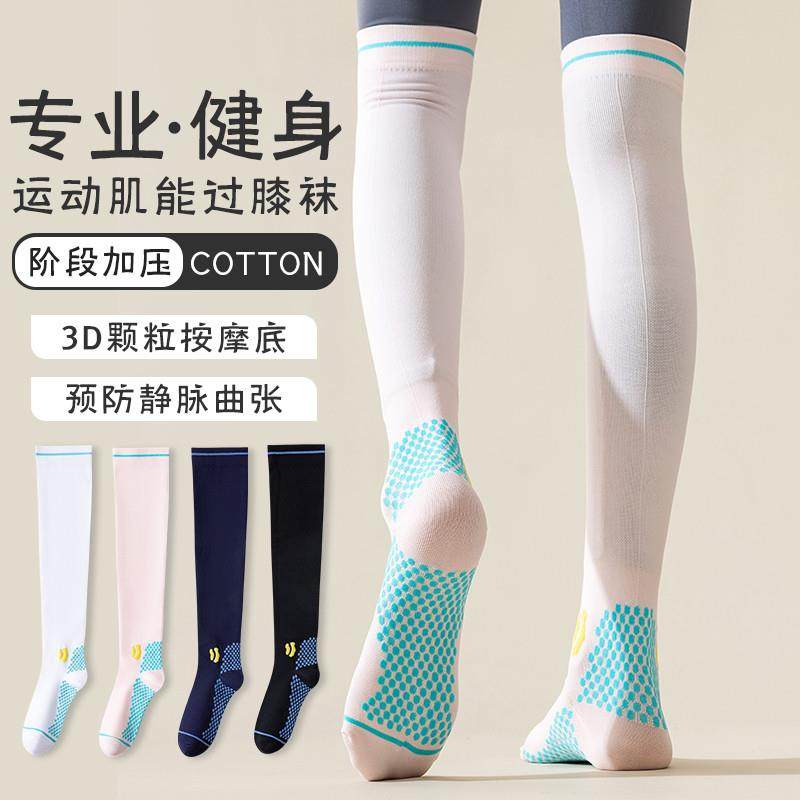 女款肌能压缩压力过膝袜子女长筒夏季专业健身运动跳绳瘦腿小腿袜