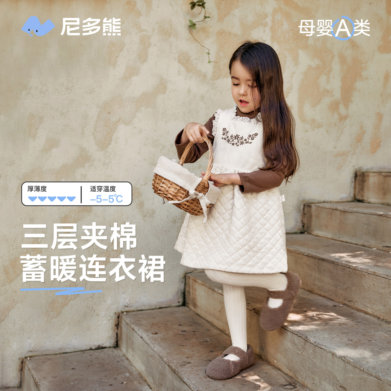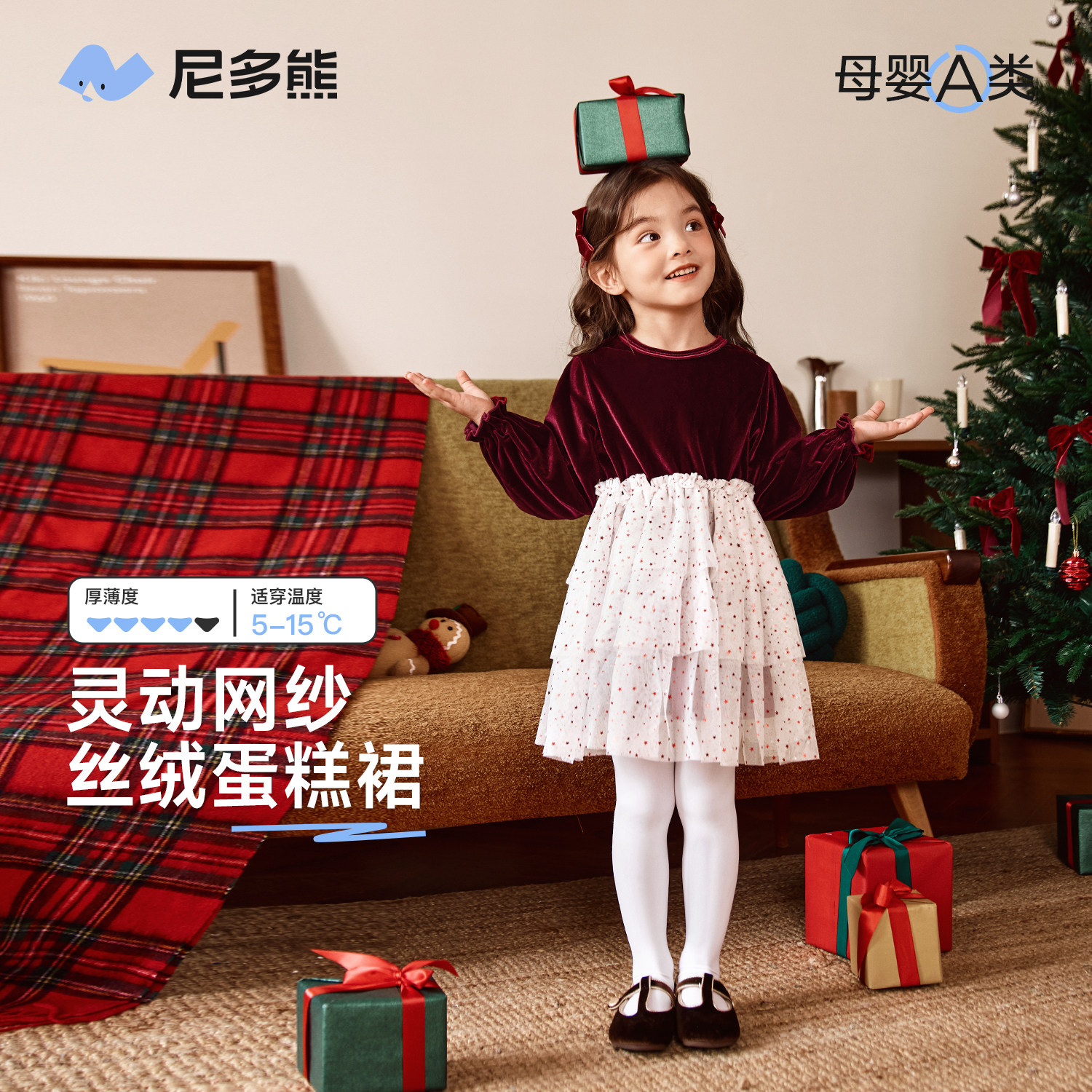 【四折起裙子清仓】尼多熊秋冬女童连衣裙女宝宝国风裙网纱裙甜美