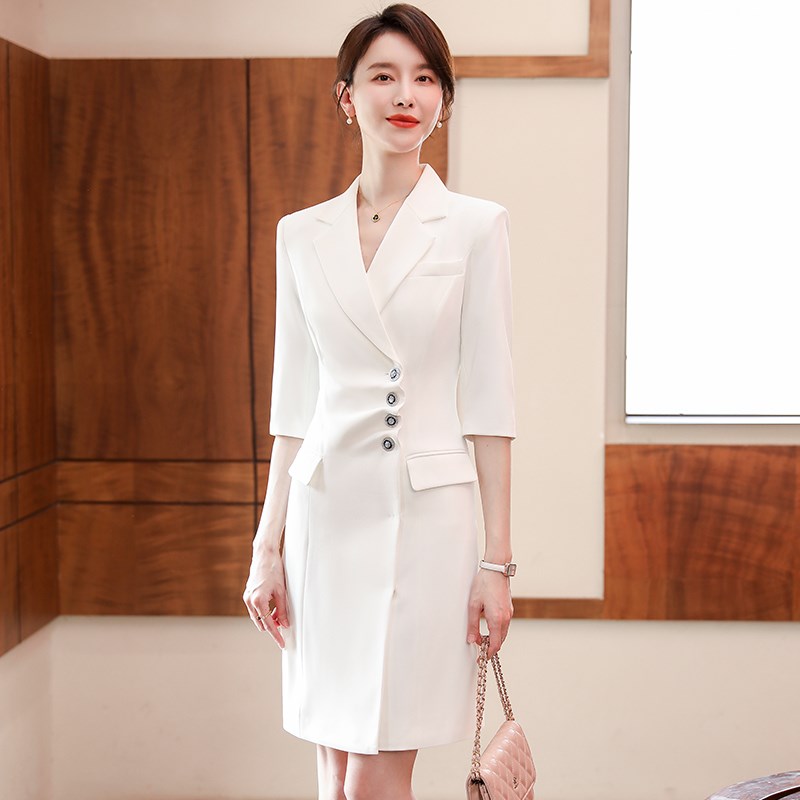 职业西装连衣裙女2024新款春秋薄款气质正式场合白色长裙面试裙子