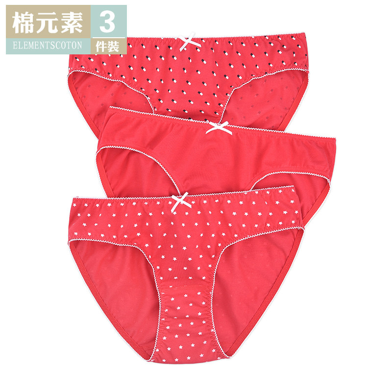 棉元素女士内裤本命年纯色大红色中低腰三角裤舒适100纯棉裆LB574