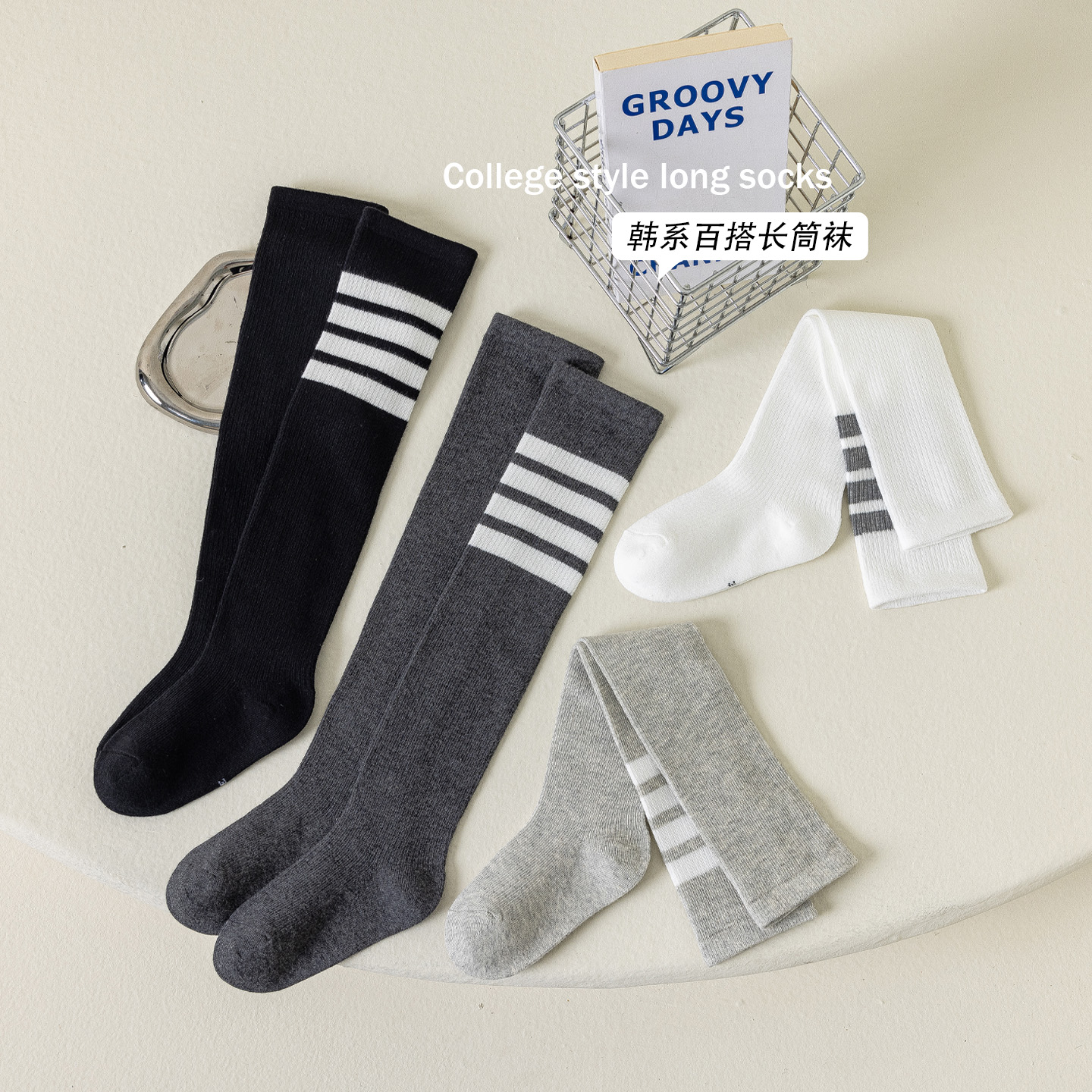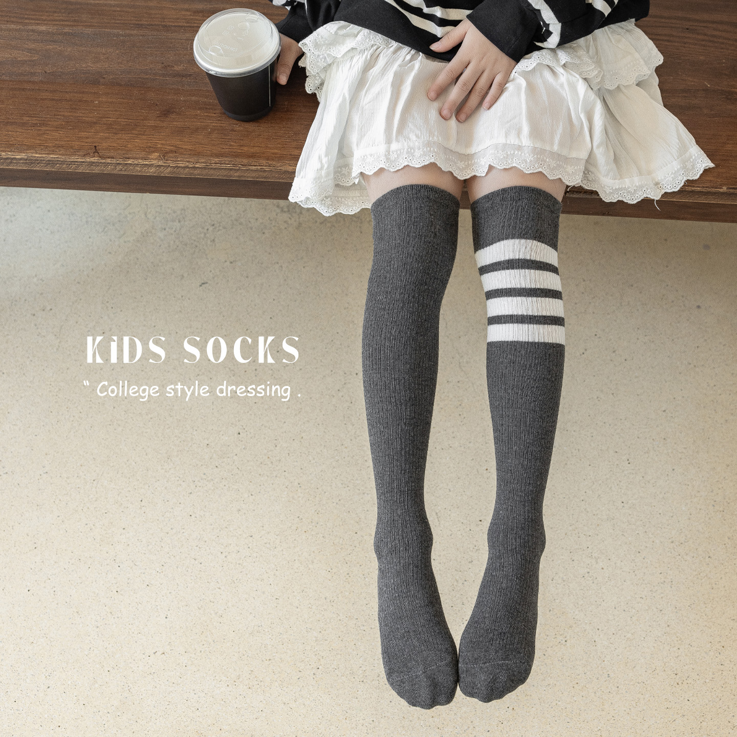 女童袜子春秋新款韩版学院风条纹长筒袜中大童学生潮袜儿童过膝袜