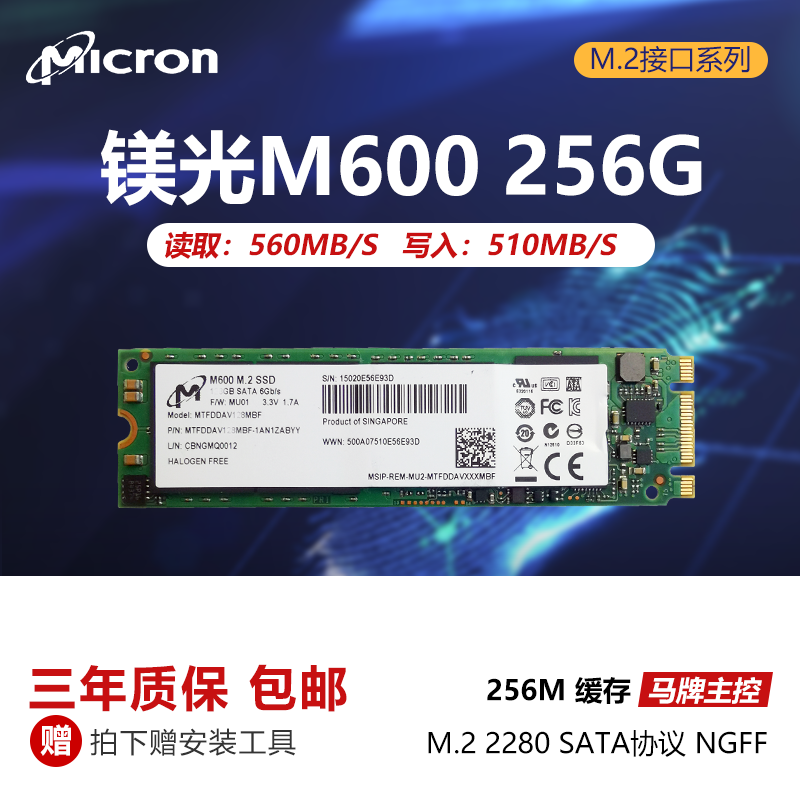 镁光M.2sata协议固态硬盘