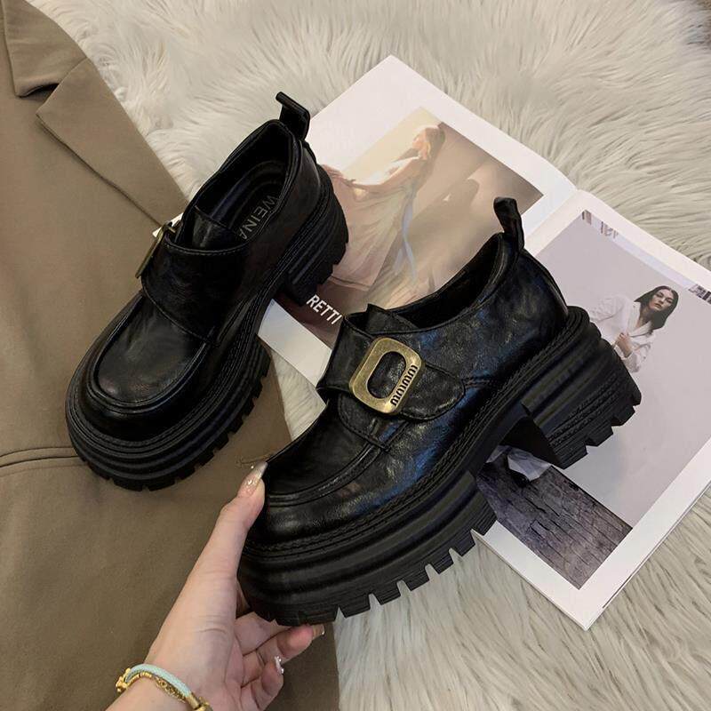 真皮乐福鞋女春秋2025新款覆古百搭粗跟厚底包鞋增高英伦风小皮鞋