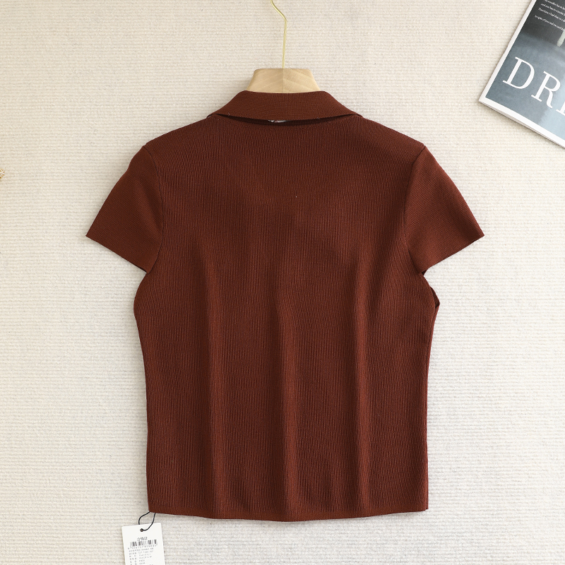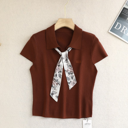 伊系!可拆卸印花丝巾!小个子百搭修身显瘦Polo领短袖针织衫T恤