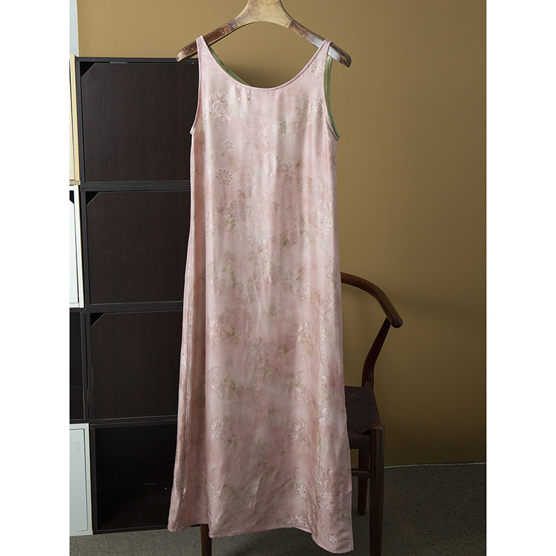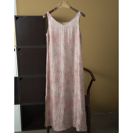 丝艺 双面穿真丝花萝背心裙女桑蚕丝提花无袖连衣裙吊带裙春新款