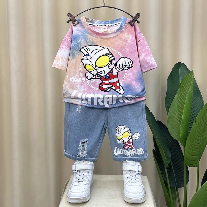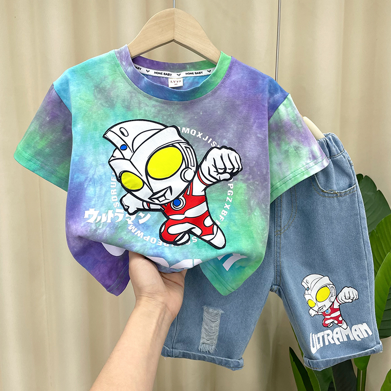 奥特曼衣服男童夏季短袖套装2025新款夏装洋气宝宝酷帅儿童薄款潮