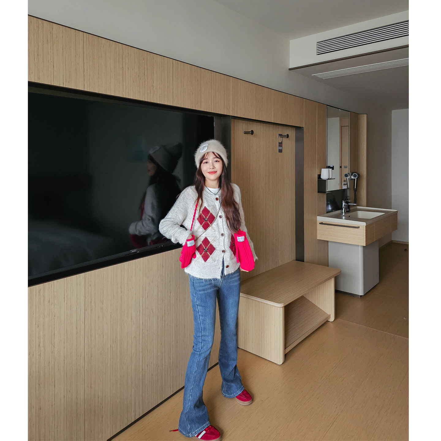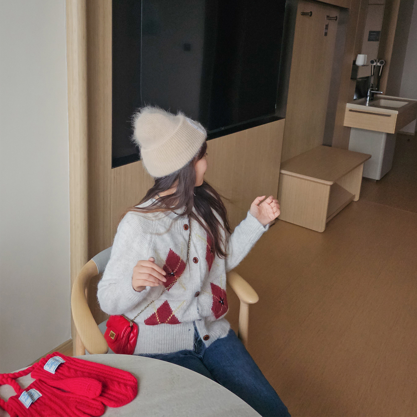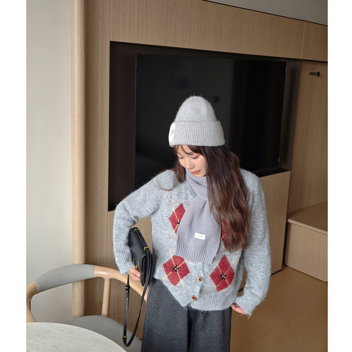 复古菱格刺绣圆领针织开衫女秋冬新款宽松慵懒风软糯毛衣外套上衣