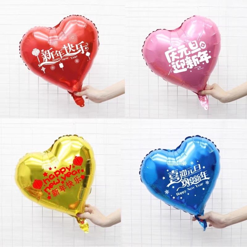 2026马年新年会装饰印字爱心形铝膜气球公司办公室商场门店铺布置