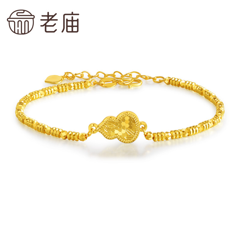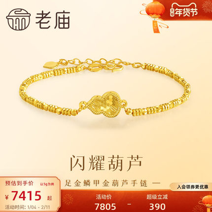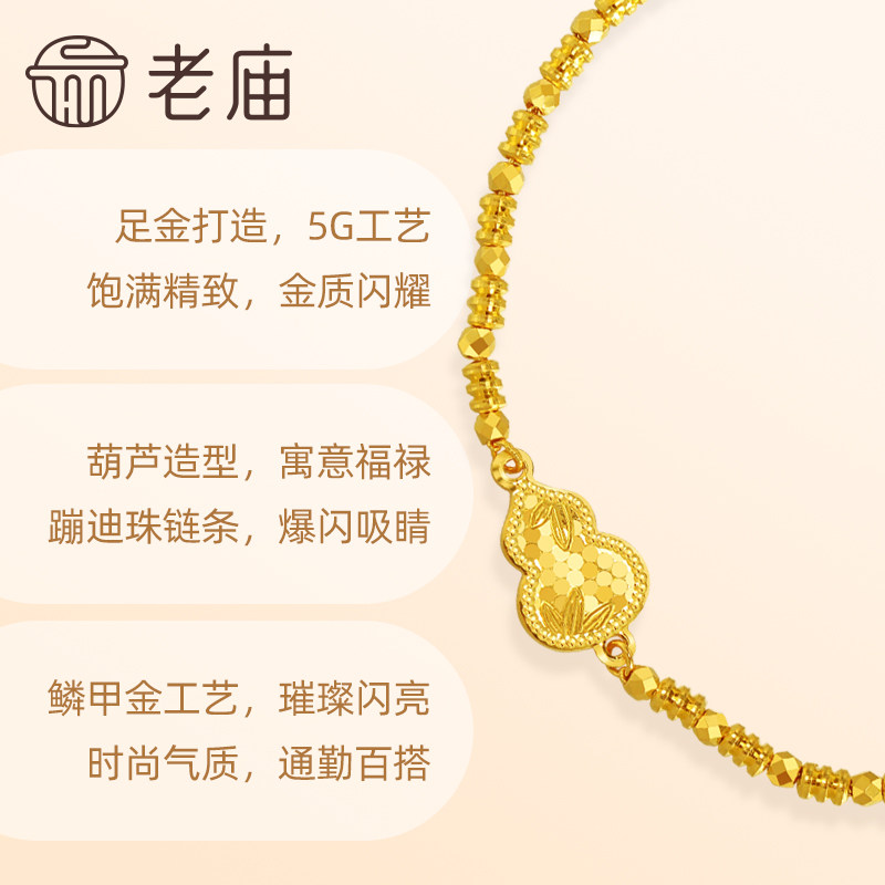 老庙黄金足金999鳞甲金葫芦手链5G工艺福禄蹦迪珠链条爆闪吸睛