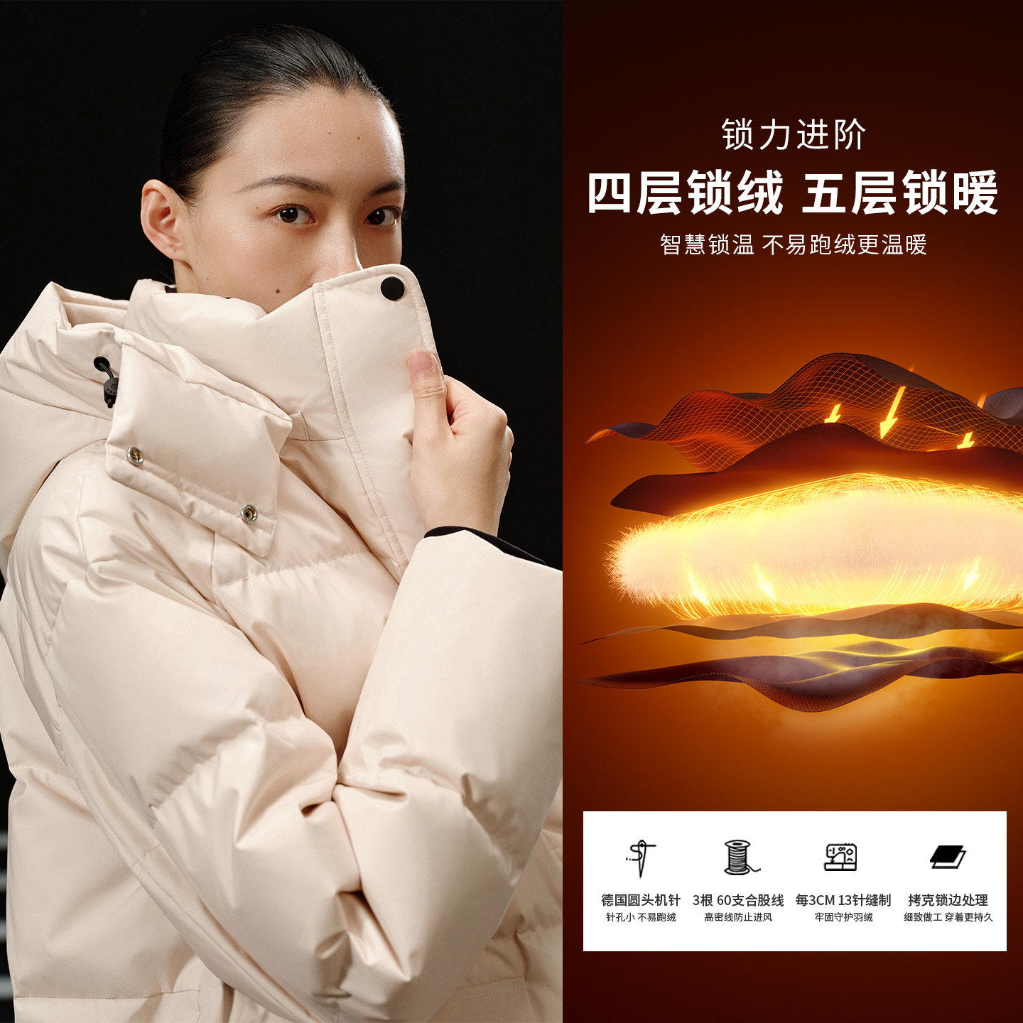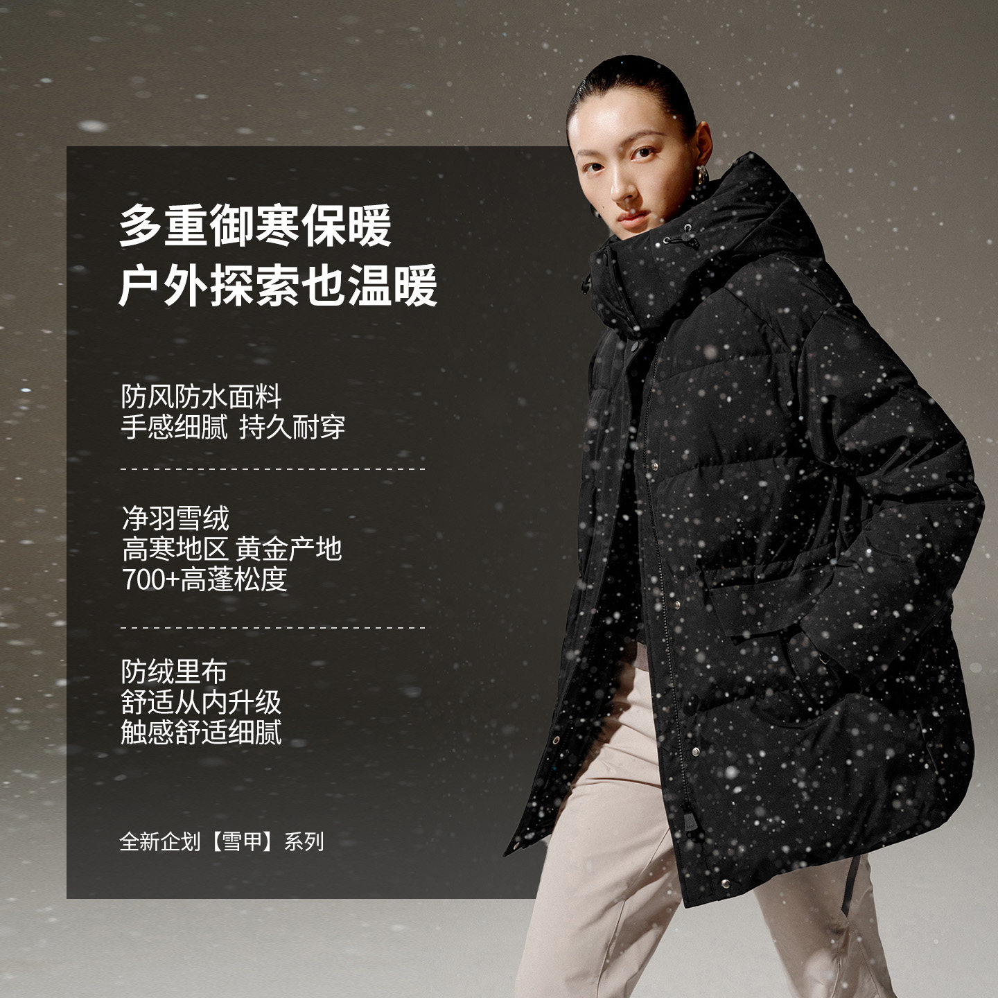 艾莱依2025新款连帽羽绒服双层门襟防风保暖实用大口袋高级短外套