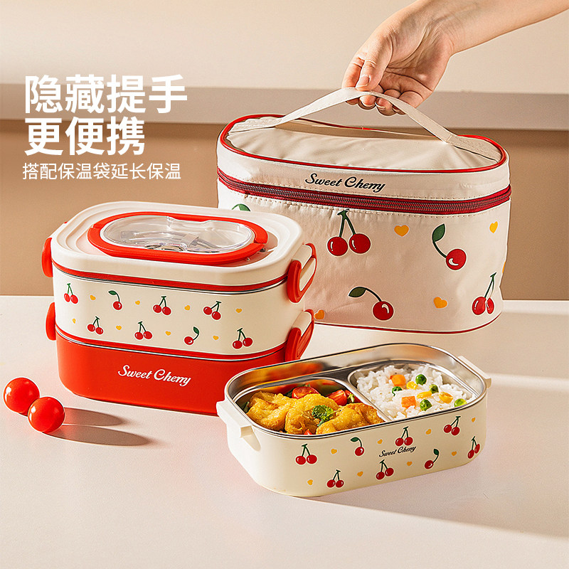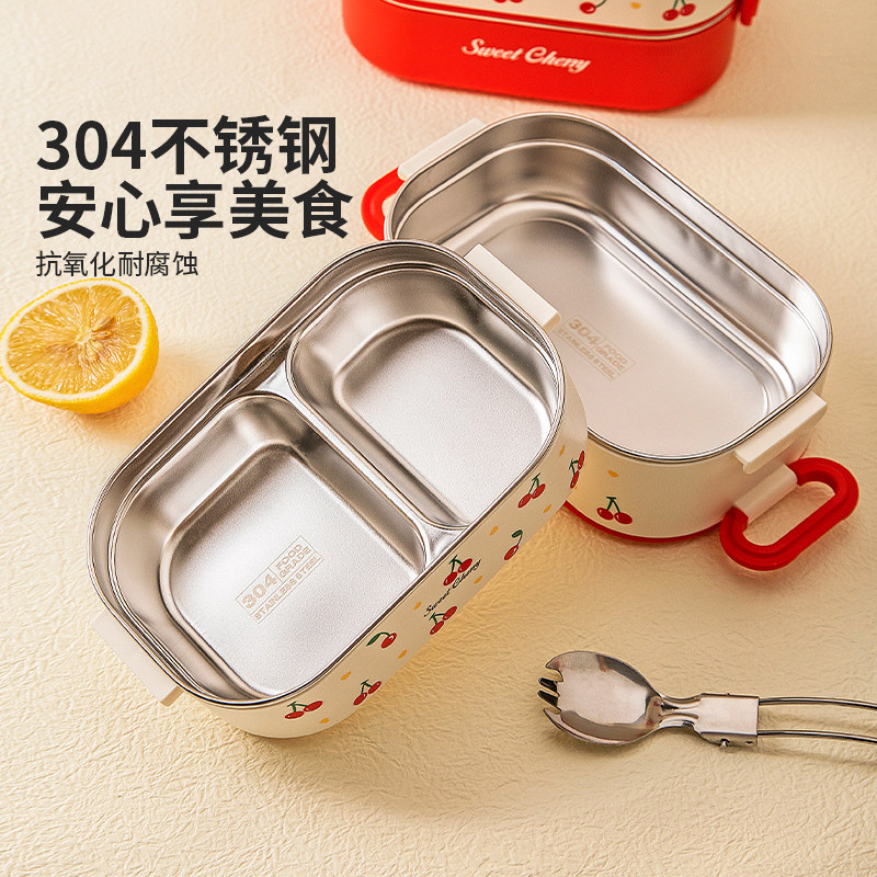 摩登主妇樱桃304不锈钢保温饭盒上班族2025新款微波炉加热便当盒