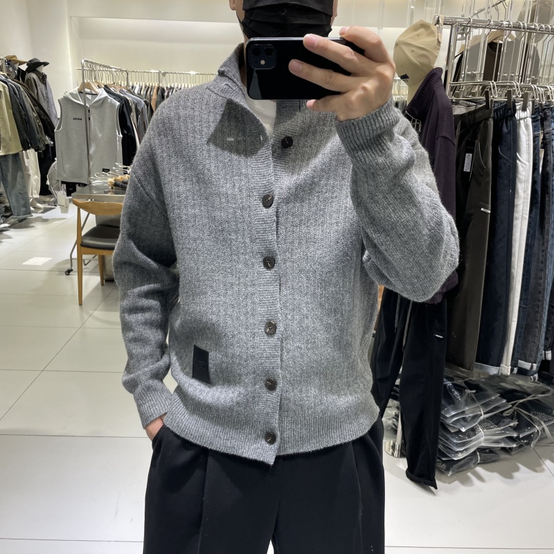 秋冬新款男士宽松工装立领排扣针织开衫日系复古百搭休闲毛衣外套