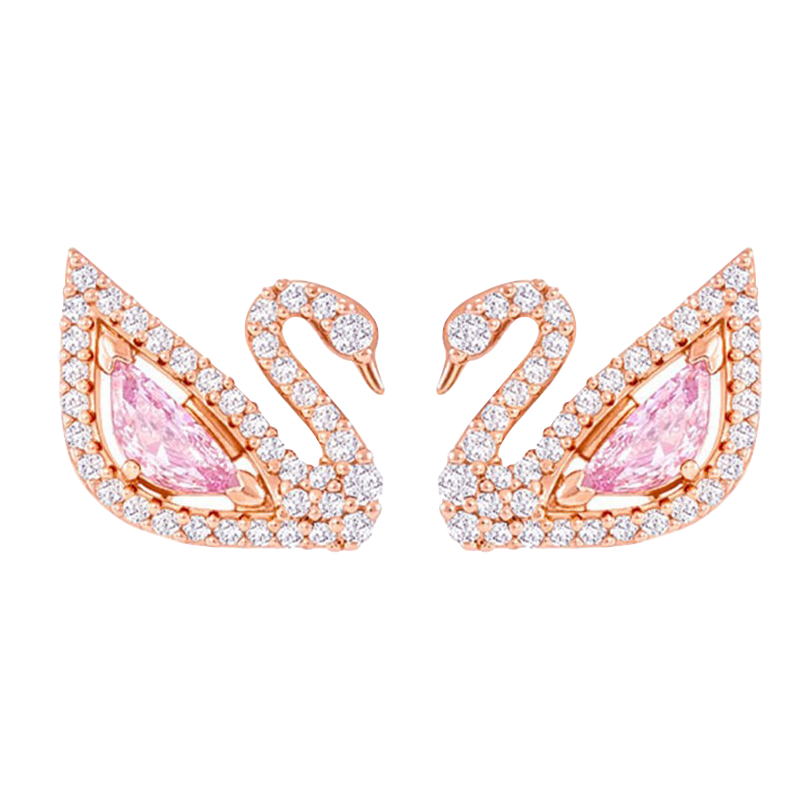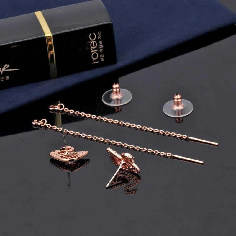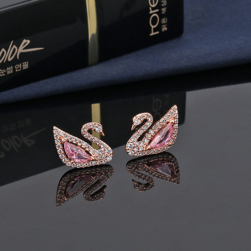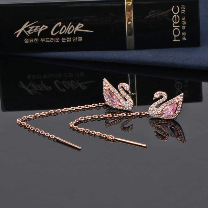 S925银针粉钻天鹅玫瑰金耳环女长款流苏耳线2024新款高级感耳钉夏