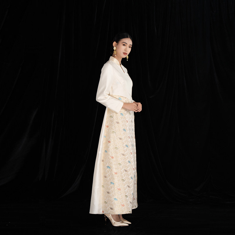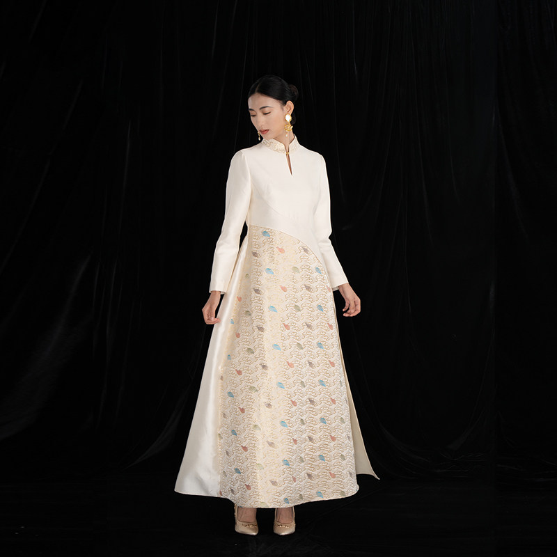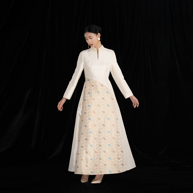 吉祥衣家新中式高级感气质优雅轻奢修身小香风云霓纷兮真丝连衣裙