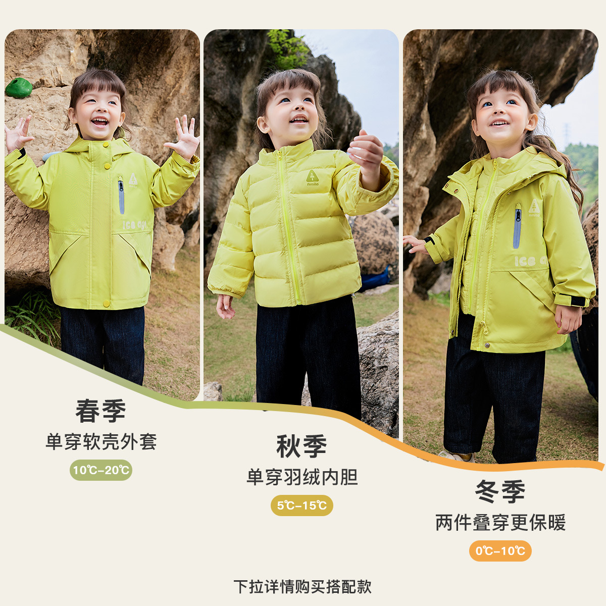啊咪啦儿童三合一冲锋衣2025秋冬季新款男女童羽绒服内胆连帽外套