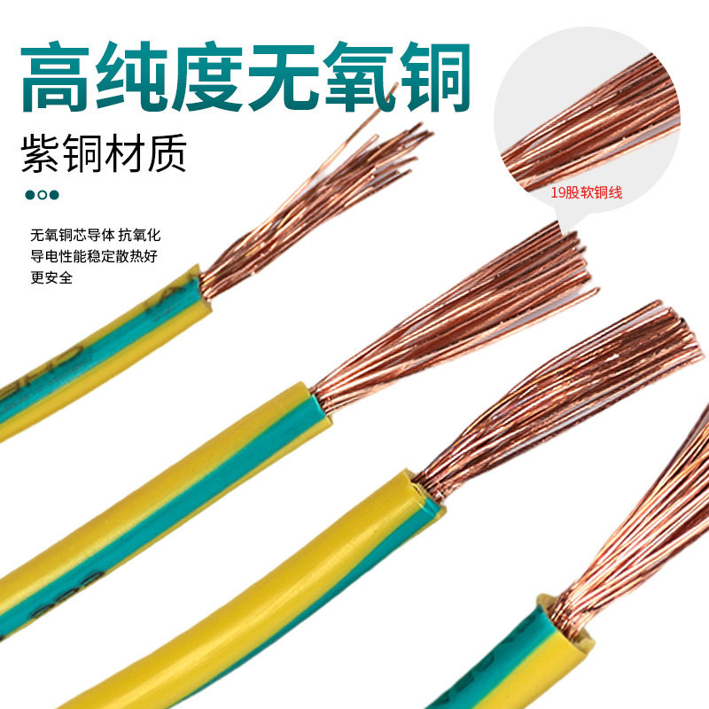国标黄绿双色接地软铜线BVR1.5/2.5/4/6平方多股软线接地线铜芯线