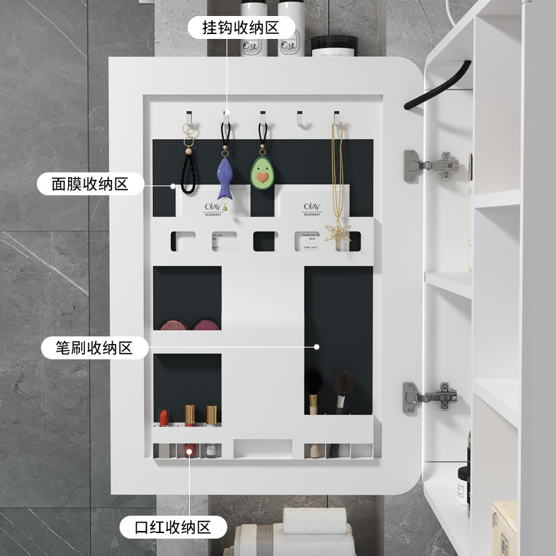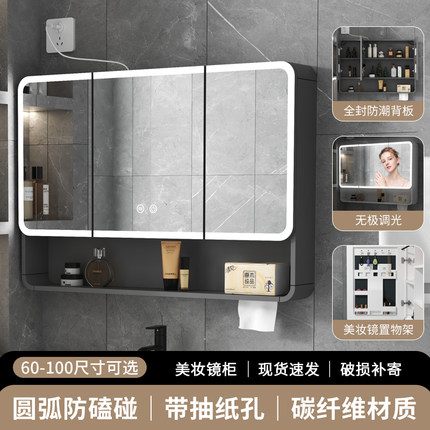 圆弧美妆浴室镜柜单独卫生间挂墙式智能洗漱镜子柜插座抽纸孔镜箱