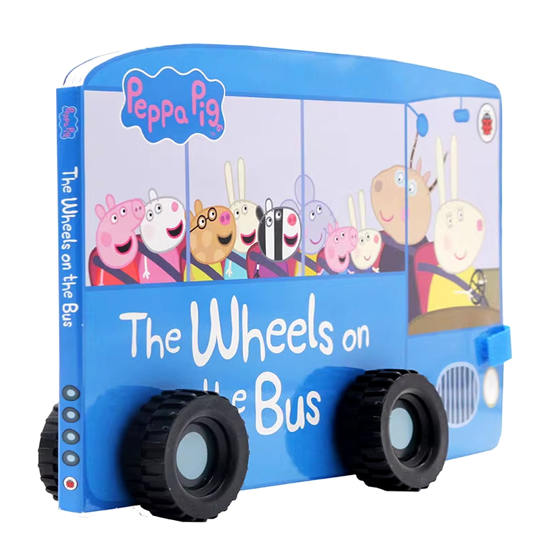 预售小猪佩奇轮子上的巴士英文原版绘本 Peppa Pig The Wheels on the Bus 粉红猪小妹带车轮子造型玩具纸板书英语读物 廖彩杏书单