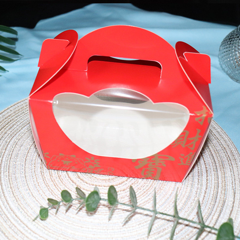 大金元宝包装纸盒中国红招财进宝蛋糕吐司面包元宝盒透明窗商用