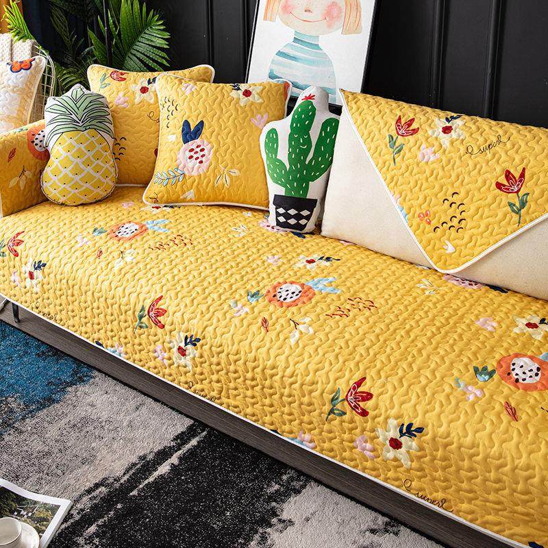 全棉沙发垫四季通用布艺纯棉防滑北欧简约贵妃靠背巾套罩卡通可爱