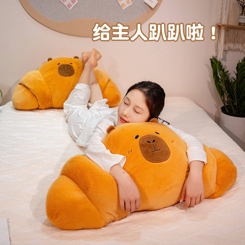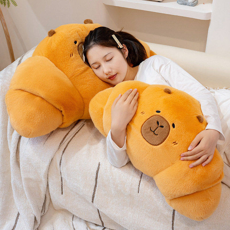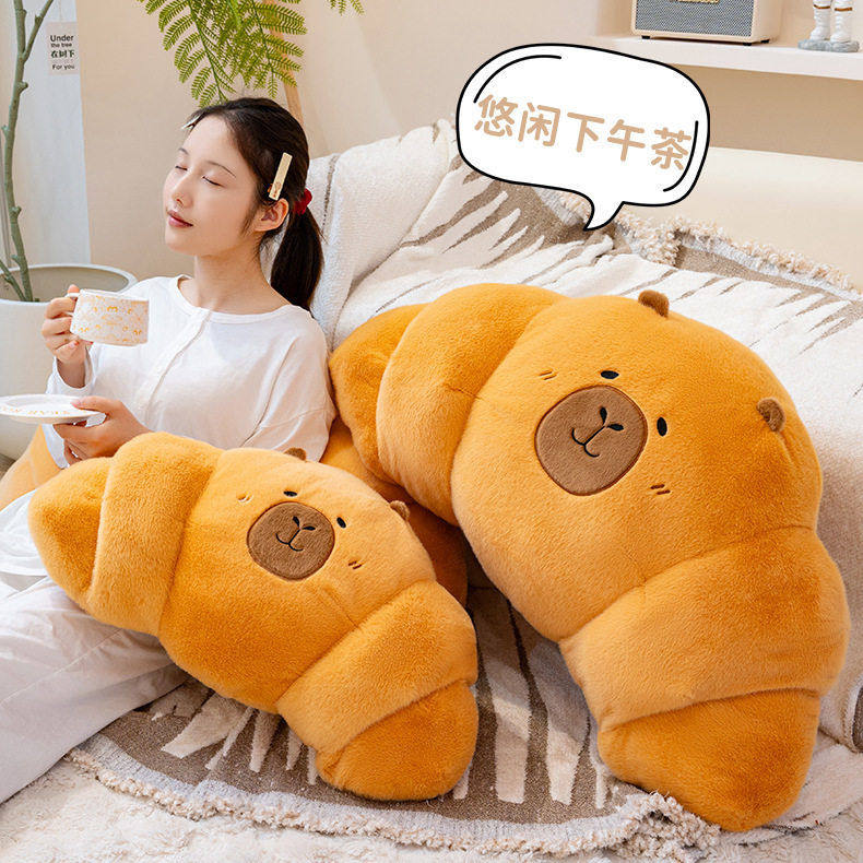 跨境新款水豚卡皮巴拉毛绒玩具牛角面包法棍烘焙抱枕护腰懒人靠垫