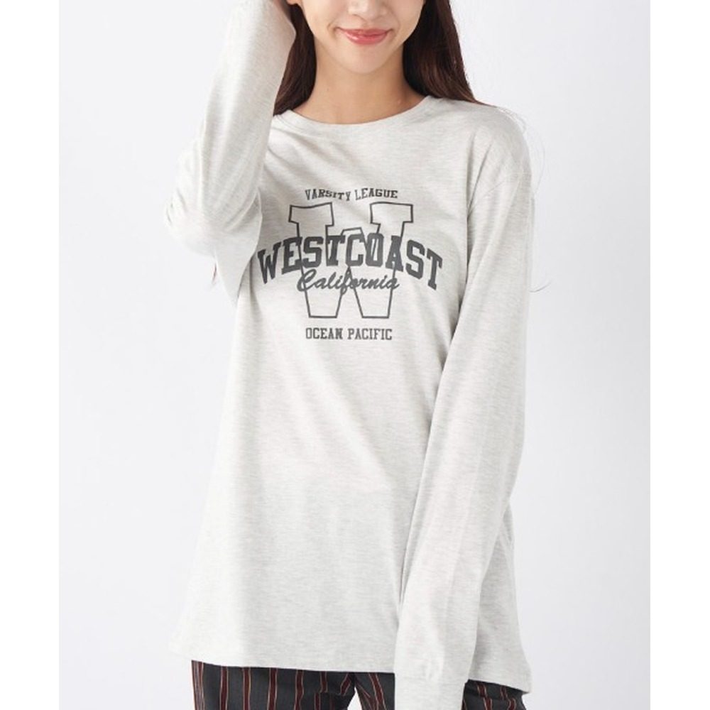 1h可退 日本直邮Ocean Pacific 女装宽松长袖T恤 半落肩学院风印