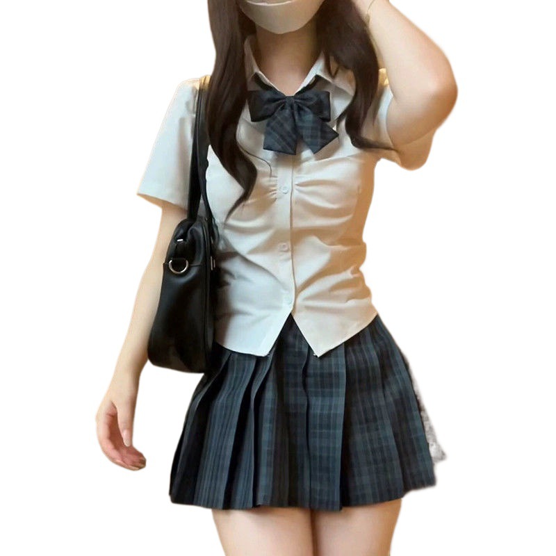 白色收腰短款夏季短袖衬衫女薄款修身显瘦设计感高腰小个子jk外套