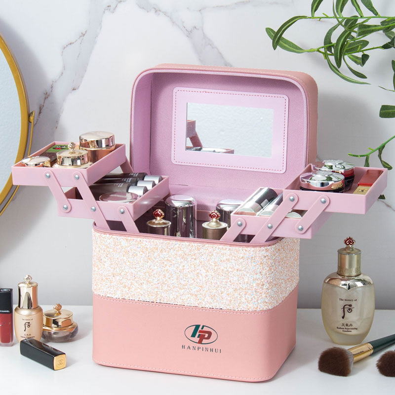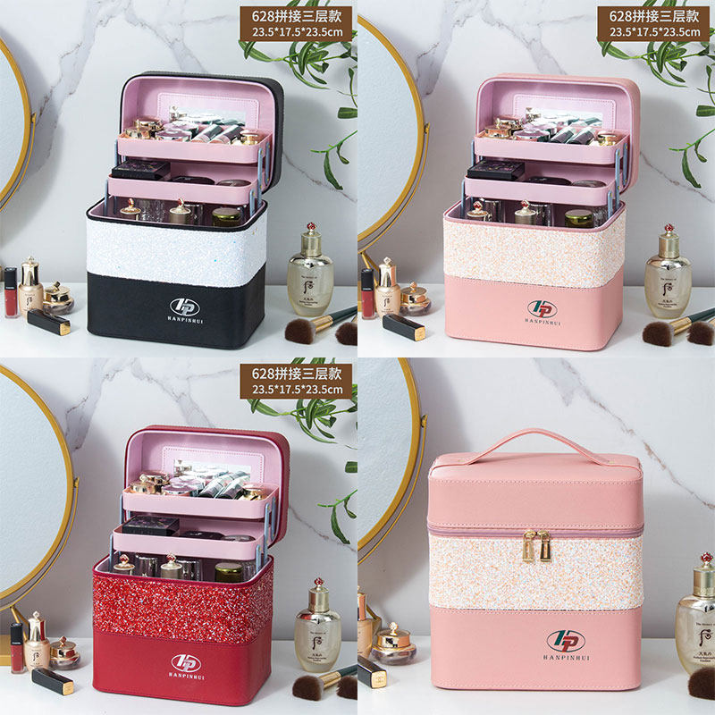 新款便携大容量超火化妆包简约韩版手提化妆箱少女心化妆品收纳盒