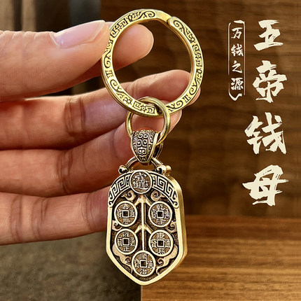 五帝钱母丨黄铜纯铜钥匙扣铜钱吊坠项链五帝钱汽车挂件挂饰品国风