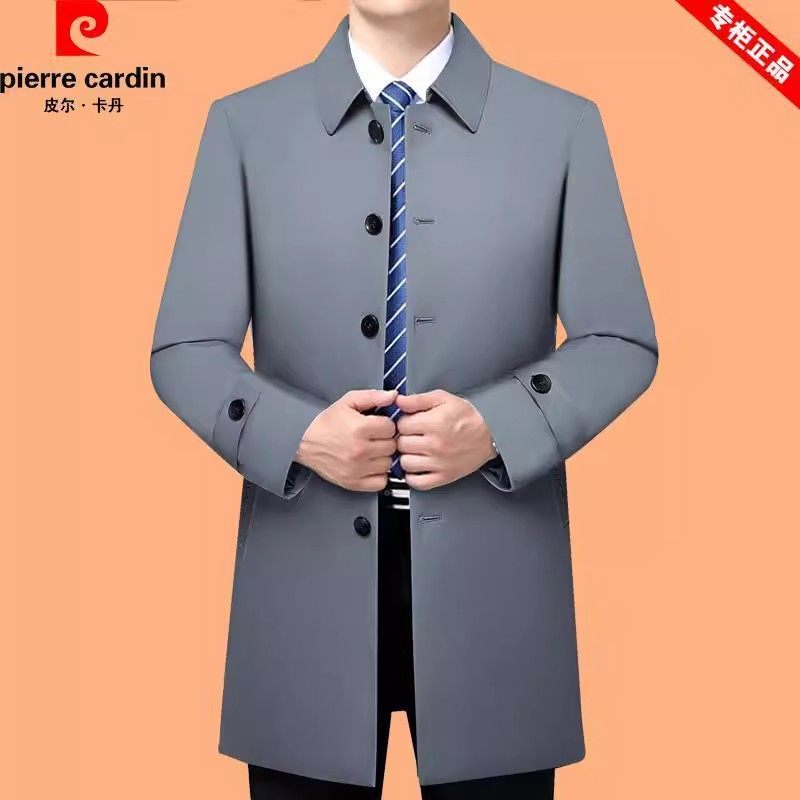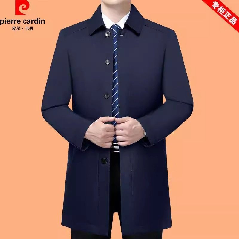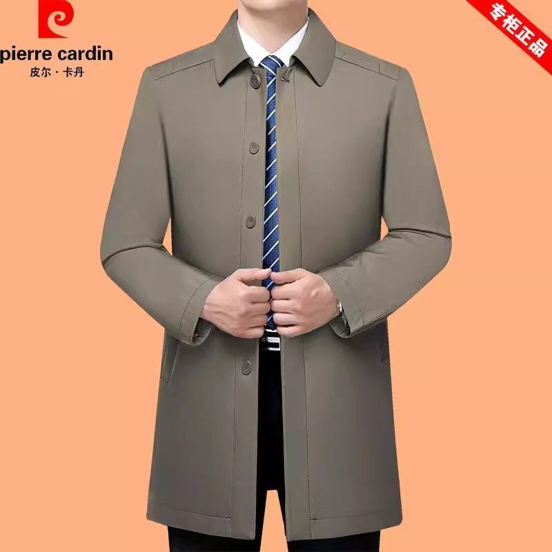 皮尔卡丹男士风衣中长款秋季新款翻领夹克商务休闲行政外套爸爸装
