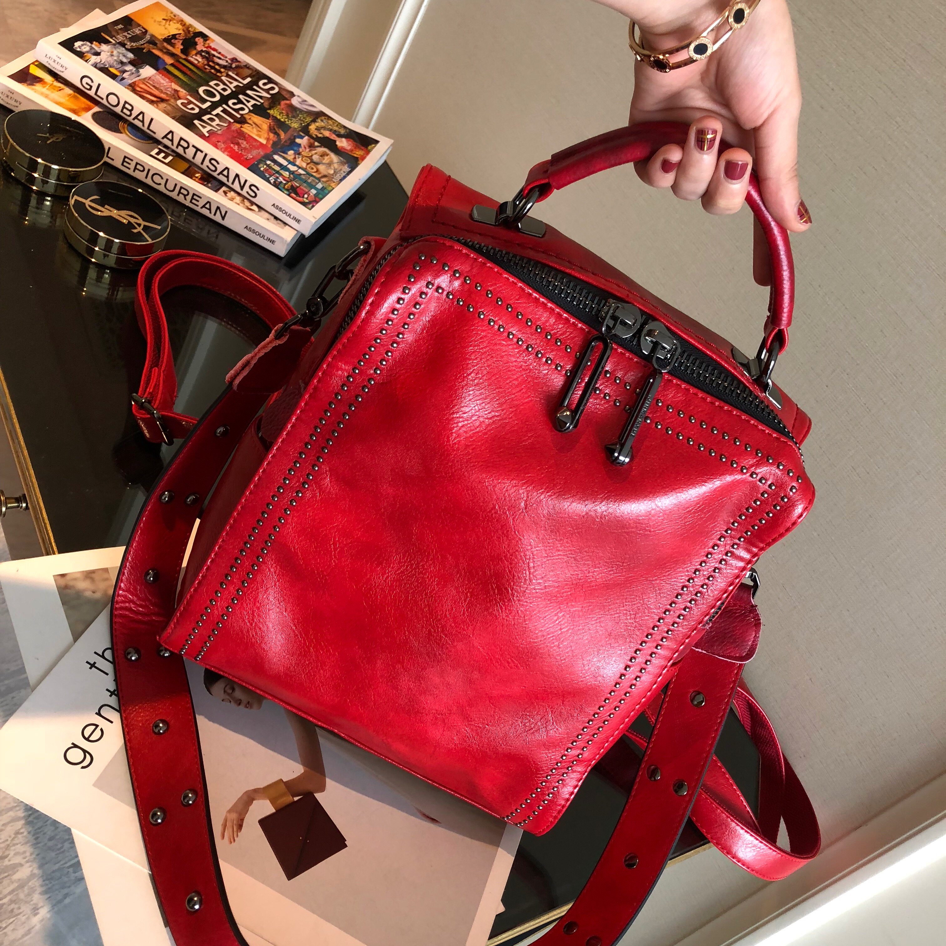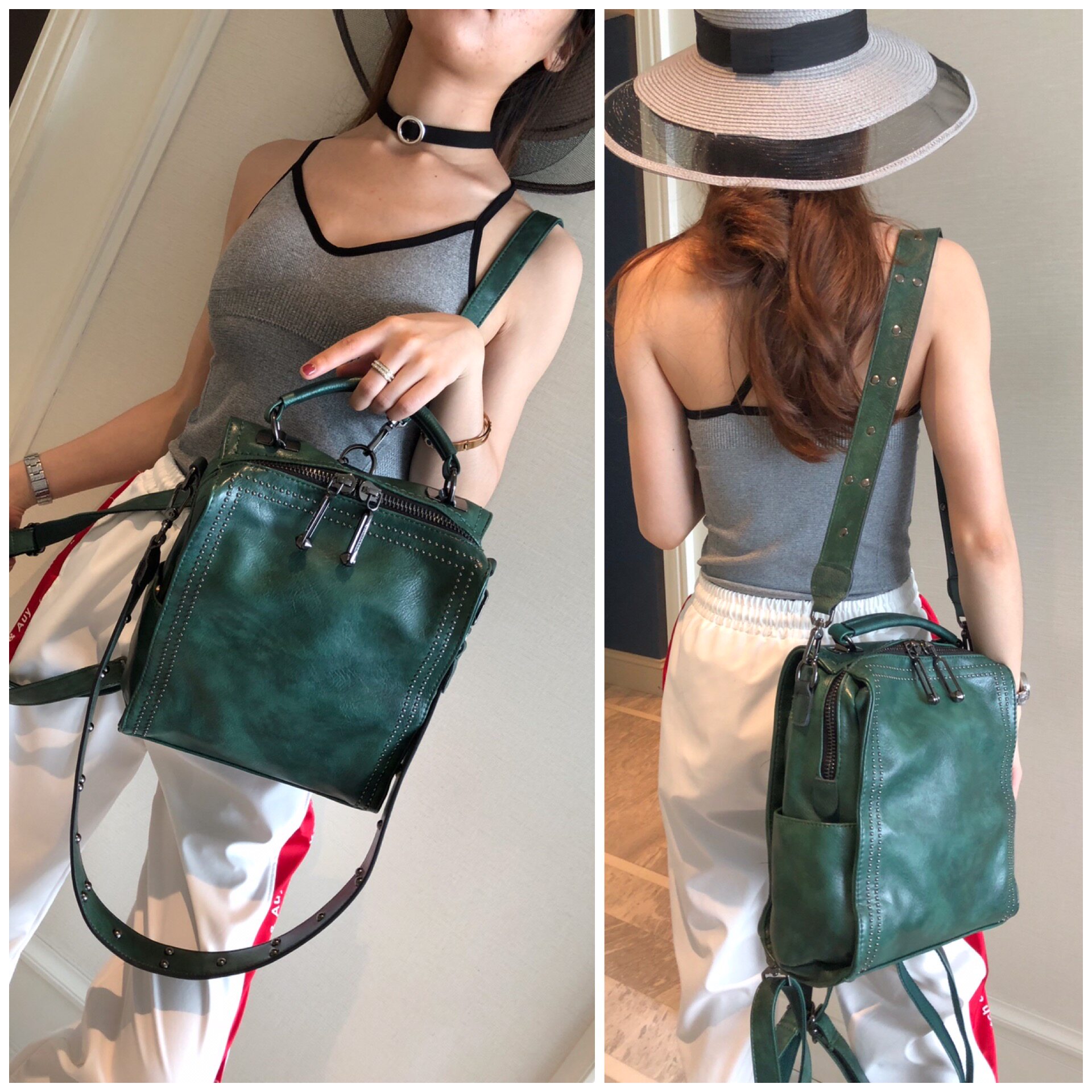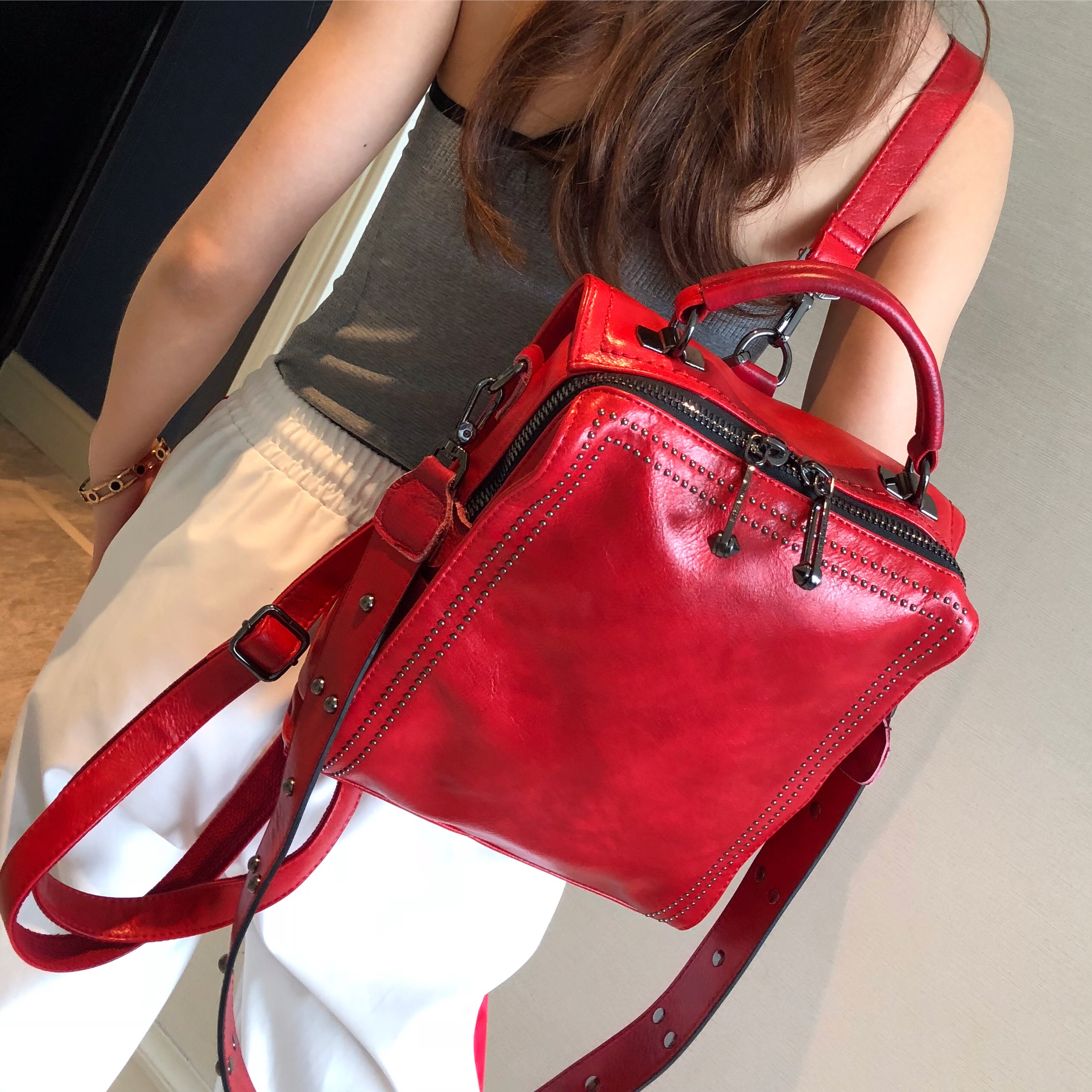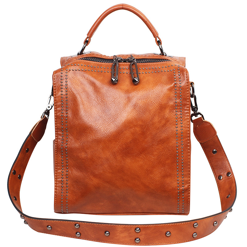 铆钉双肩包女2026新款百搭撞色女士包包单肩包复古斜挎包多用背包