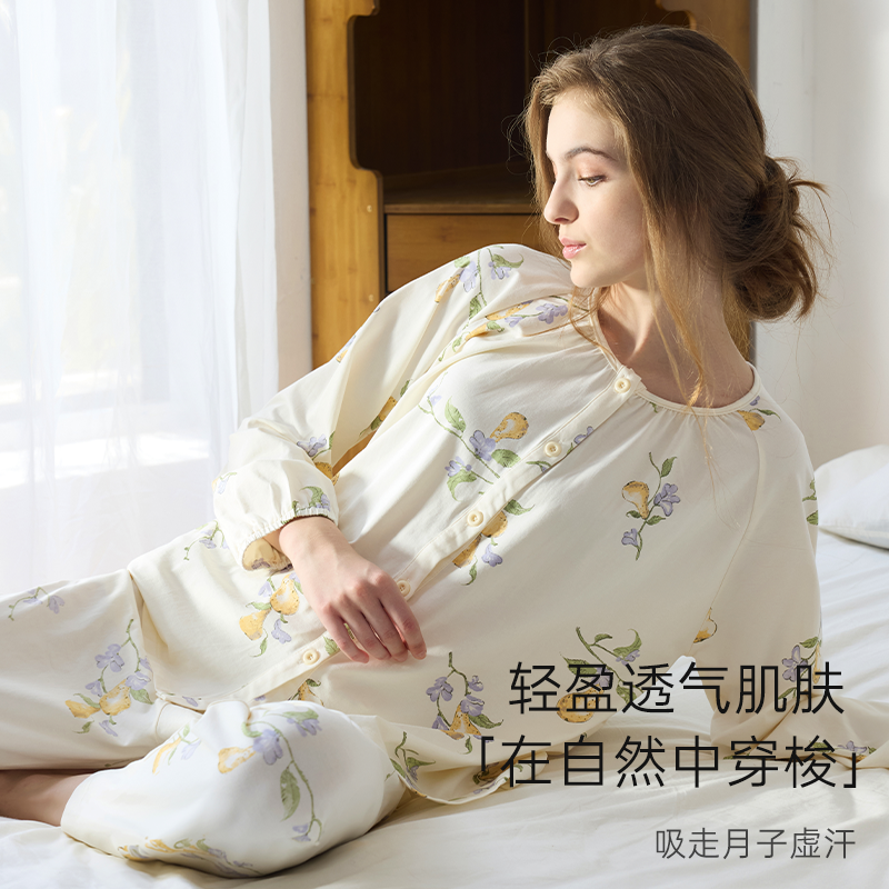loveloc月子服a类纯棉春秋孕妇睡衣产妇哺乳居家服秋冬产后四季款