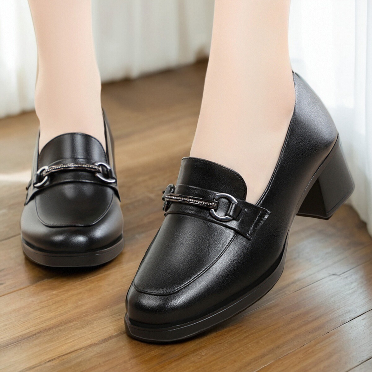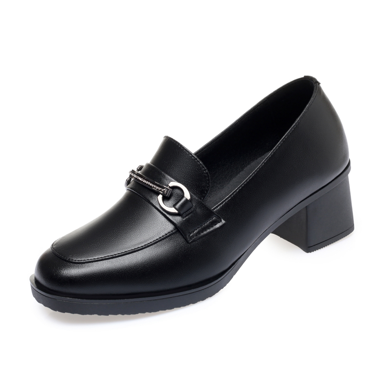 春秋新款女鞋单鞋女工作鞋真皮软底大码中跟粗跟坡跟皮鞋女单鞋