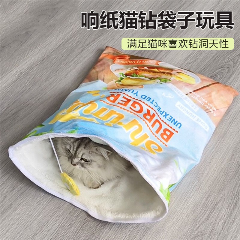 猫窝睡袋响纸发声加绒保暖猫窝猫咪睡袋猫咪软窝猫咪响纸袋