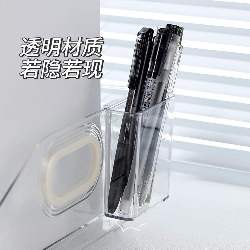 带钩透明方盒化妆品刷收纳盒挂钩式笔筒亚克力迷你置物架米木4491