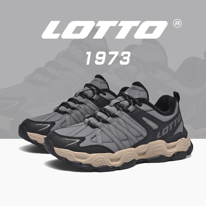 LOTTO乐途男鞋2025新款秋冬季黑色皮面加绒运动鞋户外徒步登山鞋