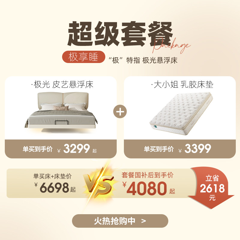 雅兰悬浮床奶油风现代简约轻奢1.8m主卧大床科技皮实木双人床极光