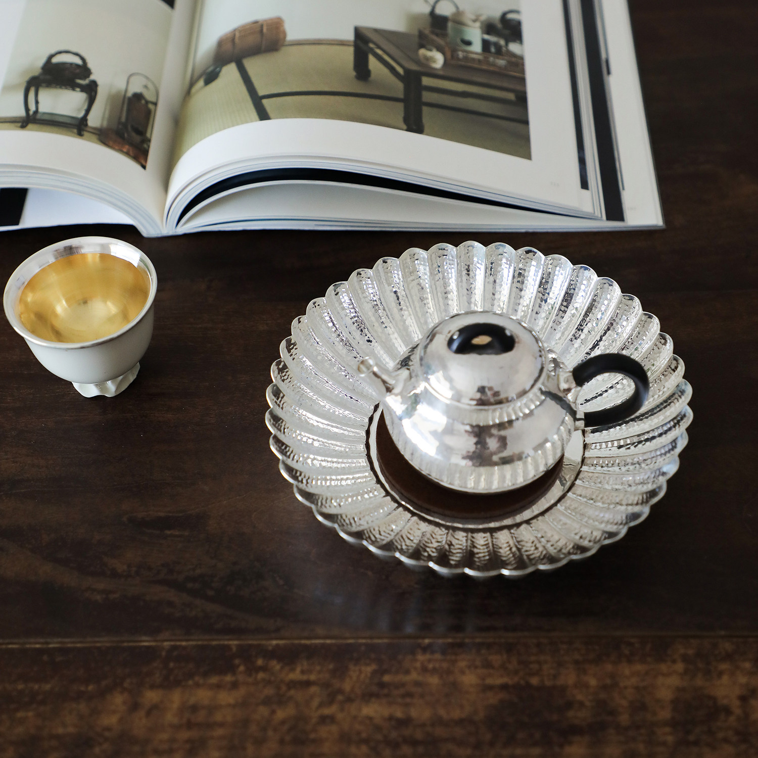 纯银时代足银纯手工茶盘茶托