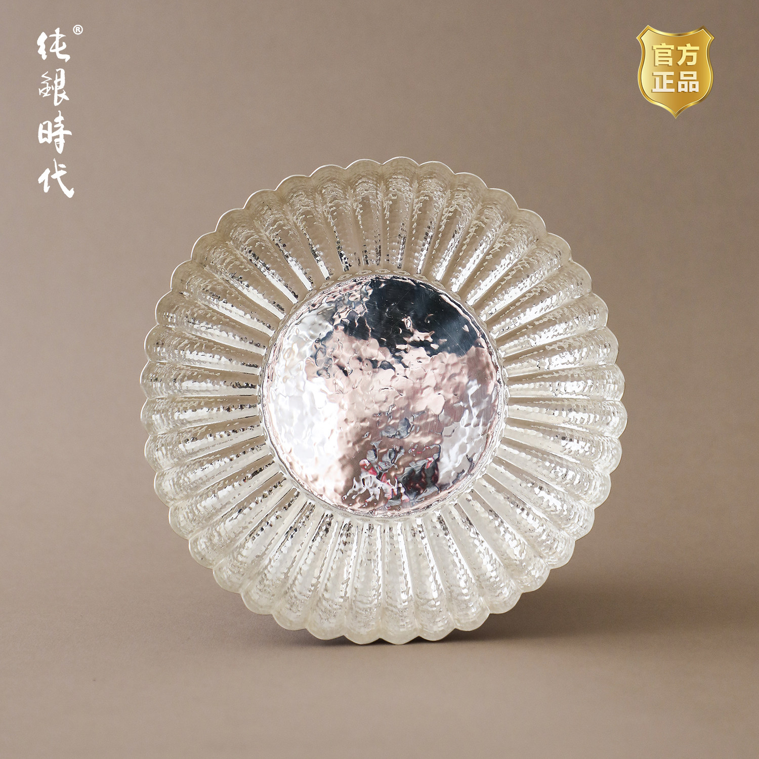 纯银时代 手打花瓣茶盘茶托银壶承足银999厚重小干泡台壶托公杯托