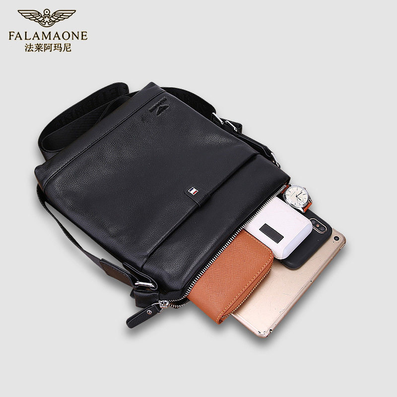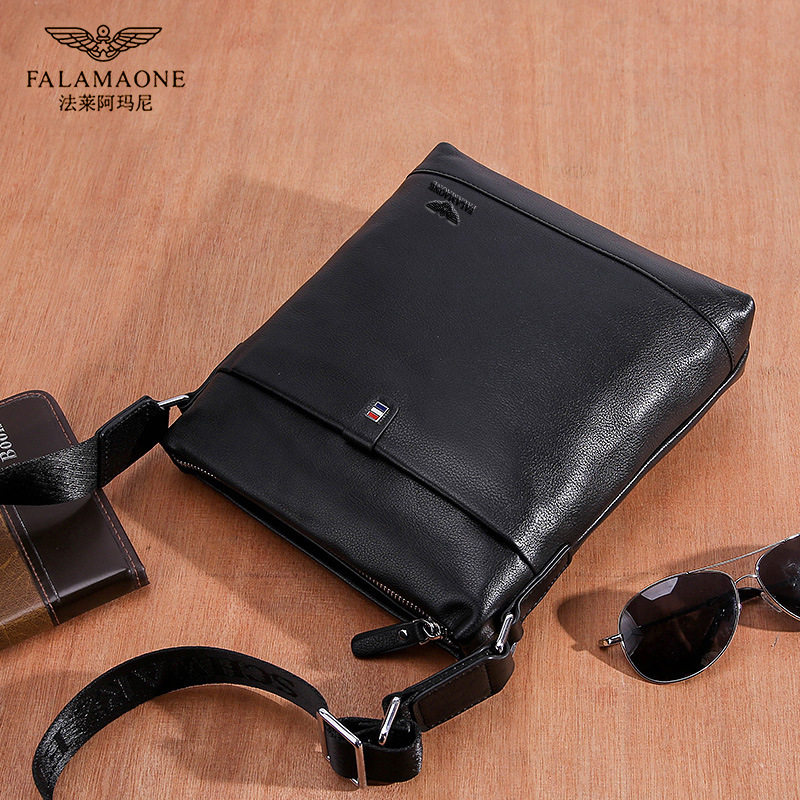 法莱阿玛尼真牛皮商务斜挎包